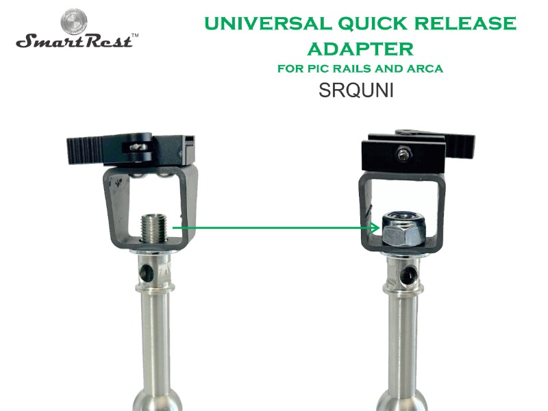 The SRQUNI is a quick release adapter that converts a bolt on light system to a quick release system. Once the parts are fitted the light or camera/thermal that mounts to the remote handle will become a quick release attachment. It clamps Arca and Picitinny.